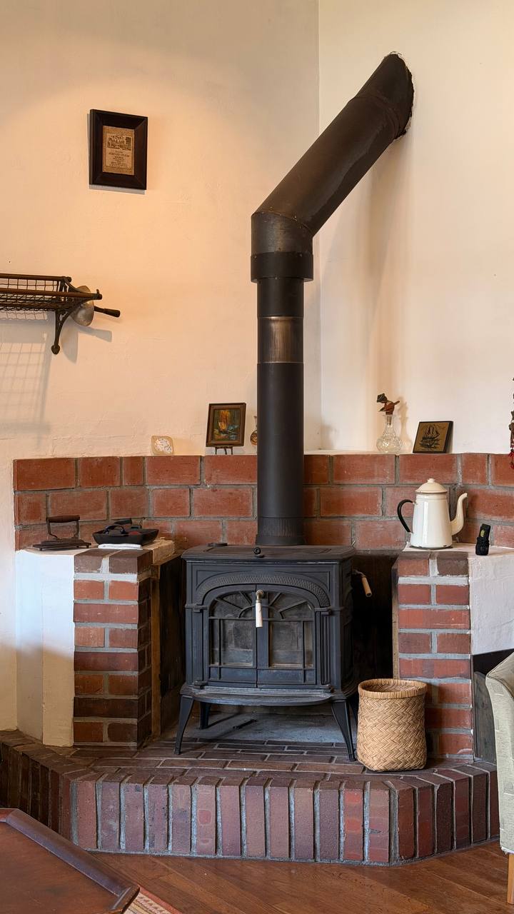 - • Living room: two sofa sets + a real wood fireplace